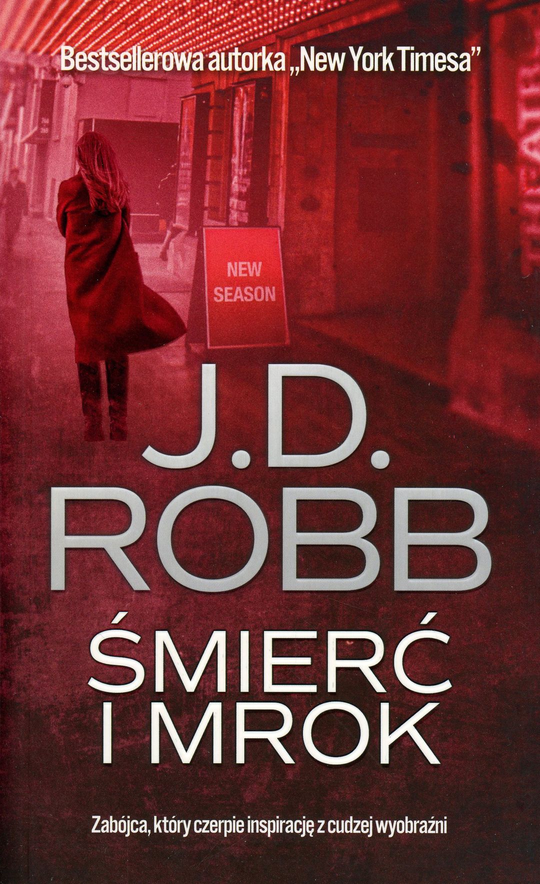 To było dźgnięcie w mroku.W pewien chłodny zimowy wieczór podczas seansu Psychozy w kinie mieszczącym się w sercu Nowego Jorku ktoś wbił szpikulec do lodu w kark Chanel Rylan, a potem niespostrzeżenie zniknął w tłumie pijaków i turystów na Times Square. Przyjaciółce ofiary śmierć Chanel wydała się równie nierzeczywista, jak stary, czarno-biały film, na który wspólnie się wybrały. Jednak krew dziewczyny spłynęła czerwienią, a w jej śmierci nie było nic fikcyjnego. Morderstwo sprawia wrażenie skrupulatnie zaplanowanego, a jednocześnie dziwnie mało osobistego. Do główkującej nad nim porucznik Eve Dallas nieoczekiwanie zgłasza się autorka thrillerów policyjnych. Pisarka rozpoznaje zbrodnię, bo… opisała ją wcześniej na kartach własnej powieści. Dallas nie wierzy w przypadek, zwłaszcza że śmierć zamordowanej niedawno prostytutki również przypomina scenę z książki tej samej autorki. Czyżby zabójca czerpał inspirację z jej wyobraźni? Jeśli to prawda, morderstwo w kinie jest dopiero drugą z długiej serii zaplanowanych przez niego zbrodni...