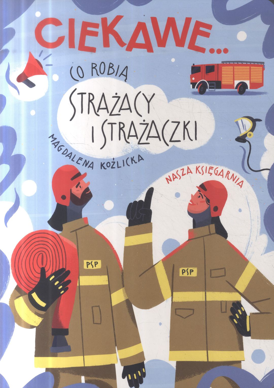 Ciekawe co robią strażacy i strażaczki / Magdalena Koźlicka. - Wydanie pierwsze. - Warszawa : Nasza Księgarnia, 2024. - [30] stron : ilustracje kolorowe ; 28 cm.