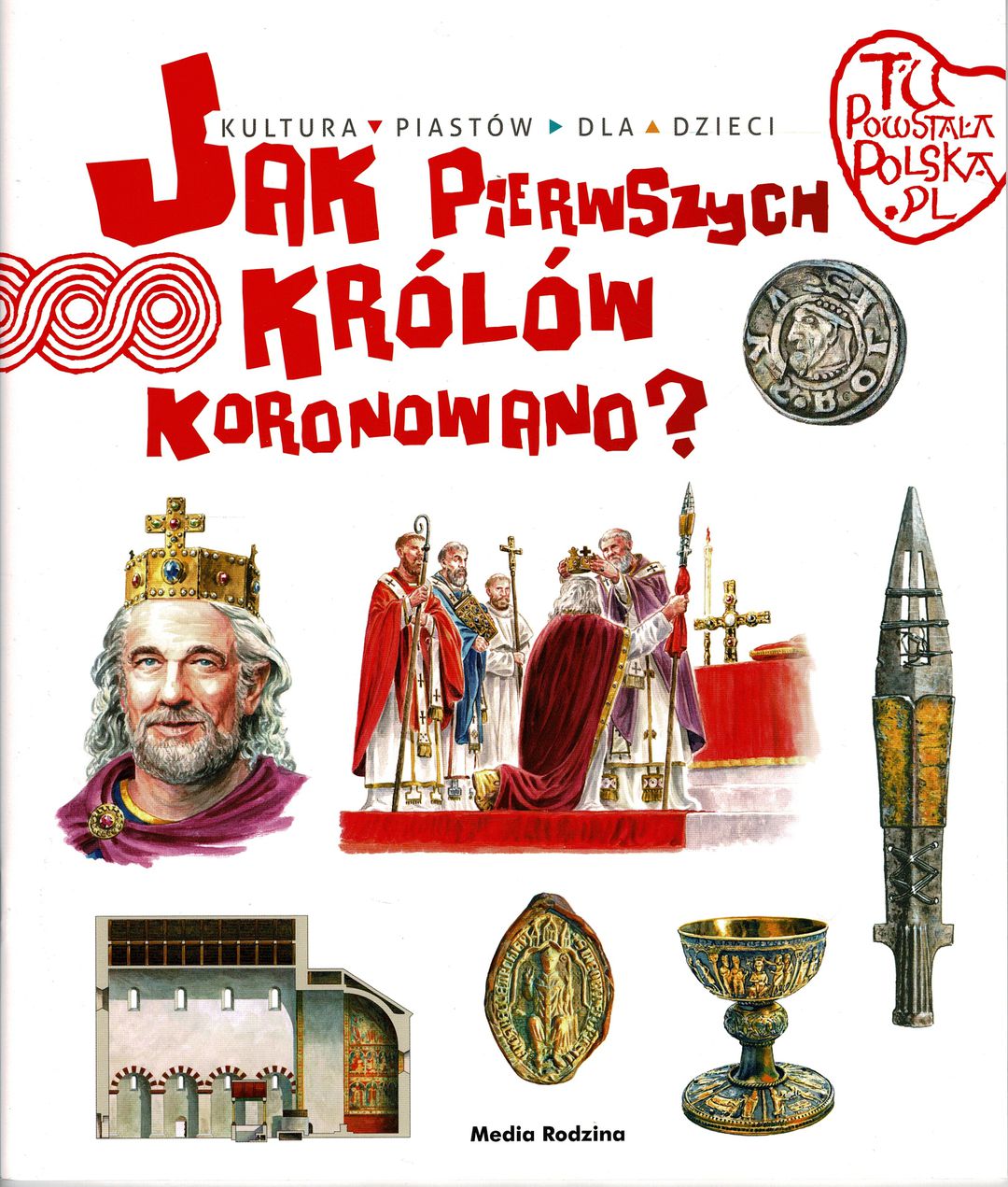 „Tu powstała Polska. Jak pierwszych królów koronowano?” – najnowszy tomik w edukacyjnym cyklu o pierwszych Piastach. Kolorowe ilustracje i ciekawe opisy przybliżają młodemu czytelnikowi kulturę i życie w dawnych wiekach. W tym tomie autor przybliża młodym czytelnikom symboliczne znaczenie koronacji w roku 1025, pokazuje, jak przebiegała ceremonia wyniesienia władcy na tron oraz prezentuje insygnia koronacyjne. W 2025 roku przypada 1000 rocznica pierwszych koronacji na ziemiach Polski. Akt koronacji miał charakter obrzędu religijnego i musiał się odbywać w świątyni. Jak więc wyglądały te szczególne kościoły koronacyjne, jakie były elementy stroju biskupa oraz jego insygnia? W kolejnej części książki poznajemy poczet władców koronowanych w Gnieźnie, począwszy od dwóch pierwszych królów z roku 1025: Bolesława Chrobrego i Mieszka II [opis wydawcy].