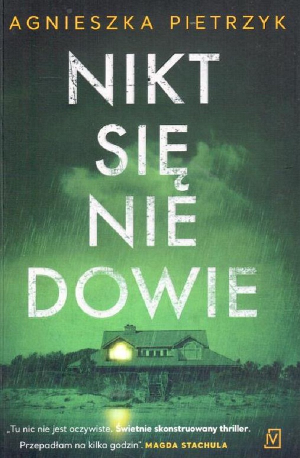 U dołu okładki: ,,Tu nic nie jest oczywiste. Świetnie skonstruowany thriller. Przepadłam na kilka godzin." - Magda Stachula