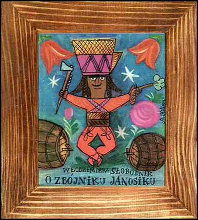 "Z mego okna widzę góry, Nad górami płyną chmury, Giewont w oknie mym bieleje, Nad Giewontem wicher wieje. Chylę się nad kałamarzem, Myślę, myślę, marzę, marzę… O czym pisać? Z mgły wynika* Wdała** postać Janosika. Na nim serdak czerwoniutki, Kołpak na nim lśni złociutki. Tęczą górską przepasany, Rusza zbójnik w tan nad tany, Aż gór pasmo się kołysze..."